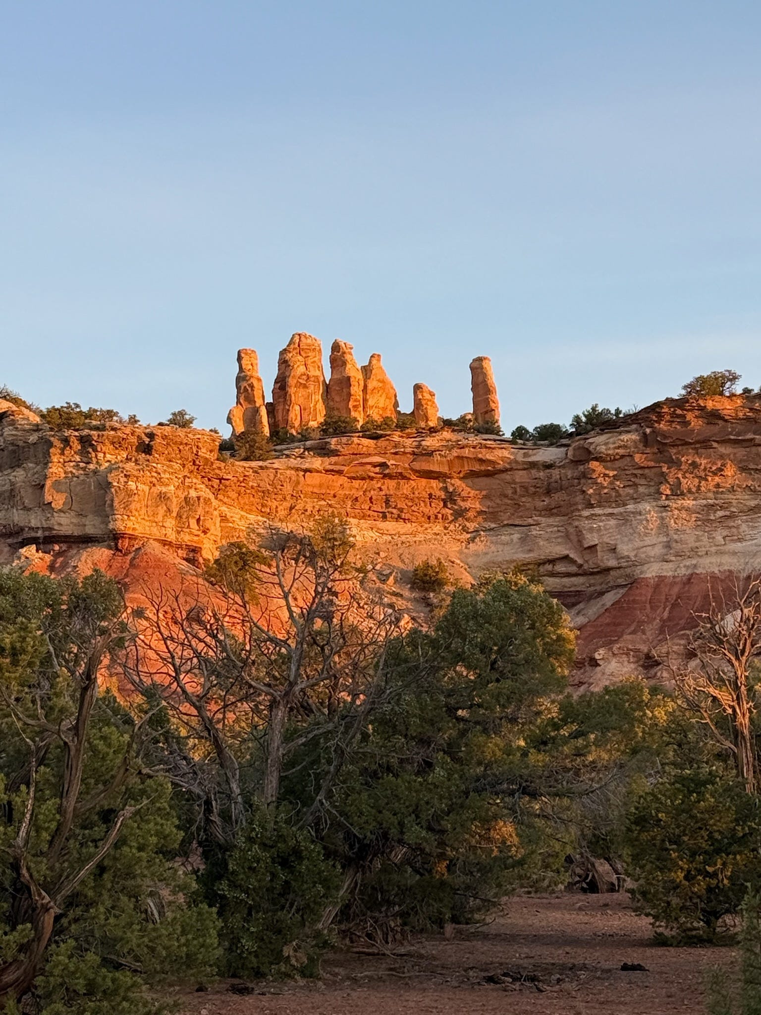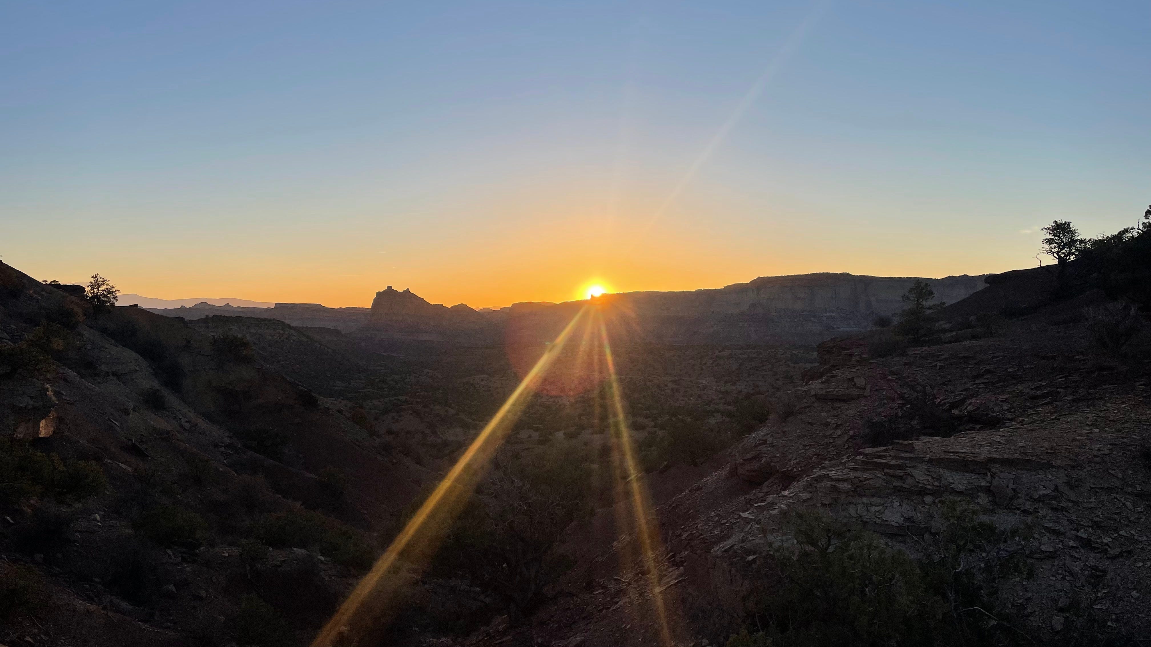 You walk to the ledge of the red rock to help digest and catch the sun peeking behind the reef.